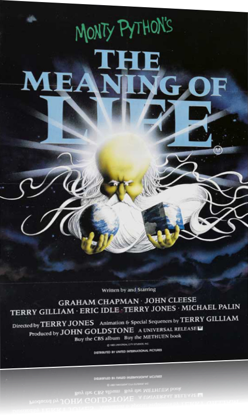 | Why are we here, what's it all about? The Monty Python-team is trying to sort out the most important question on Earth: what is the meaning of life? They do so by exploring the various stages of life, starting with birth. A doctor seems more interested in his equipment than in delivering the bab...